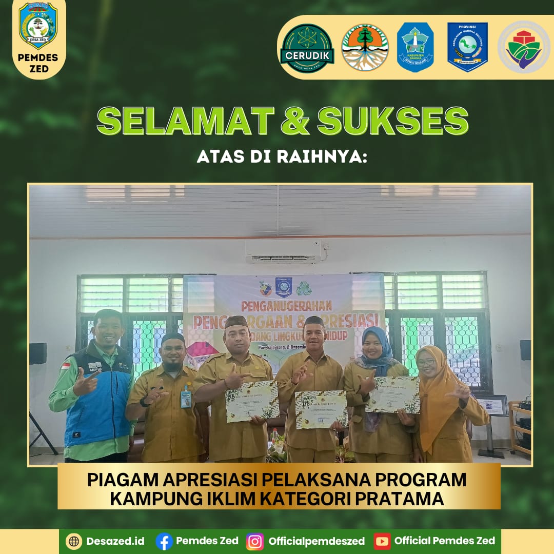 Desa Zed Raih Piagam Apresiasi Pelaksana Program Kampung Iklim Kategori Pratama